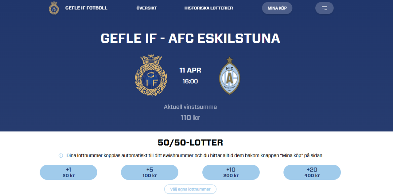 Du behöver alltså inte vara på plats på matchen – köp dina lotter hemifrån, på jobbet eller på språng direkt i mobilen!
